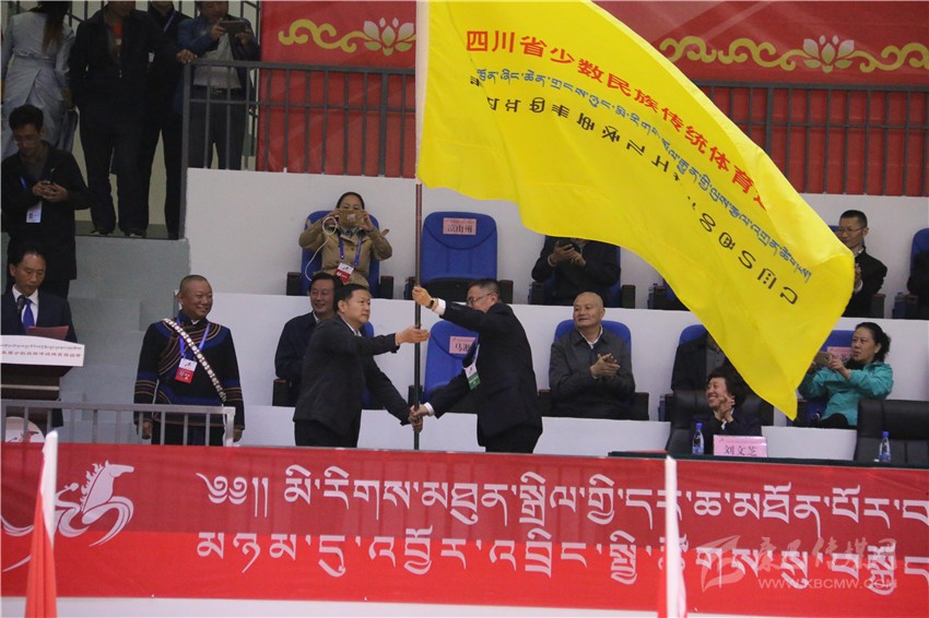 閉幕式上舉行了會(huì)旗交接儀式,由甘孜州委常委、州人民政府副州長(zhǎng)李一昕將運(yùn)動(dòng)會(huì)會(huì)旗交還組委會(huì)副主任、省民族宗教委主任張富國(guó),由張富國(guó)將會(huì)旗轉(zhuǎn)交給下屆民族運(yùn)動(dòng)會(huì)承辦單位代表涼山州委常委、州人民政府副州長(zhǎng)裴啟斌。四川省第十六屆少數(shù)民族傳統(tǒng)體育運(yùn)動(dòng)會(huì)將于2022年在涼山州舉行。