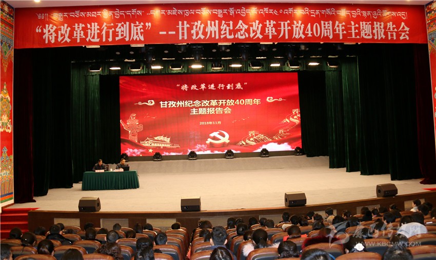 本網(wǎng)訊 昨(21)日上午,由州委宣傳部主辦的我州慶祝改革開放40周年“將改革進行到底”主題報告會在康定劇場舉行。來自州委各部委、州政府各部門、省州屬行政企事業(yè)單位以及康定市機關干部職工代表共計500余人聆聽了報告。