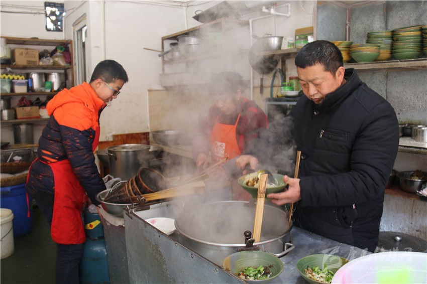 楊紅清一家在康定南郊經(jīng)營面館已有8年。8年來,他一直堅持春節(jié)照常營業(yè),正月十五再回家與親友團(tuán)聚。正因為年年春節(jié)不休業(yè)也不漲價,老楊的面館積累了很多熟客。被問道春節(jié)照常營業(yè)的原因,楊紅情說:“無論什么時候,吃飯都是人最基本的需要,有些人因為各種原因,過年找不到地方吃飯,我家的面條也許就是某人的團(tuán)年飯,所以自己辛苦一點也很高興。另外,我的家人都在這里,店里忙完,一家人一起做年夜飯,然后一起吃,也很高興。”