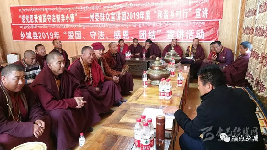 本網(wǎng)訊 4月12日,“感黨恩、愛(ài)祖國(guó)、守法制、奔小康”——州委群眾宣講團(tuán)2019年度“和諧鄉(xiāng)村行”宣講走進(jìn)鄉(xiāng)城縣熱打鄉(xiāng)和白依鄉(xiāng)丁真嶺寺。