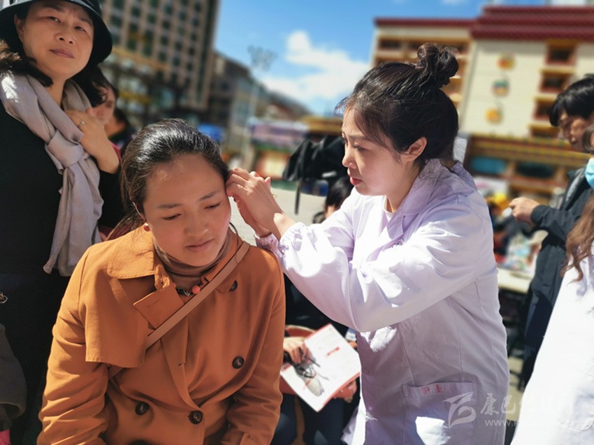 在康定市三合鄉(xiāng)色龍村,當?shù)厝罕姮F(xiàn)場向巴特爾一行打快板頌黨恩。