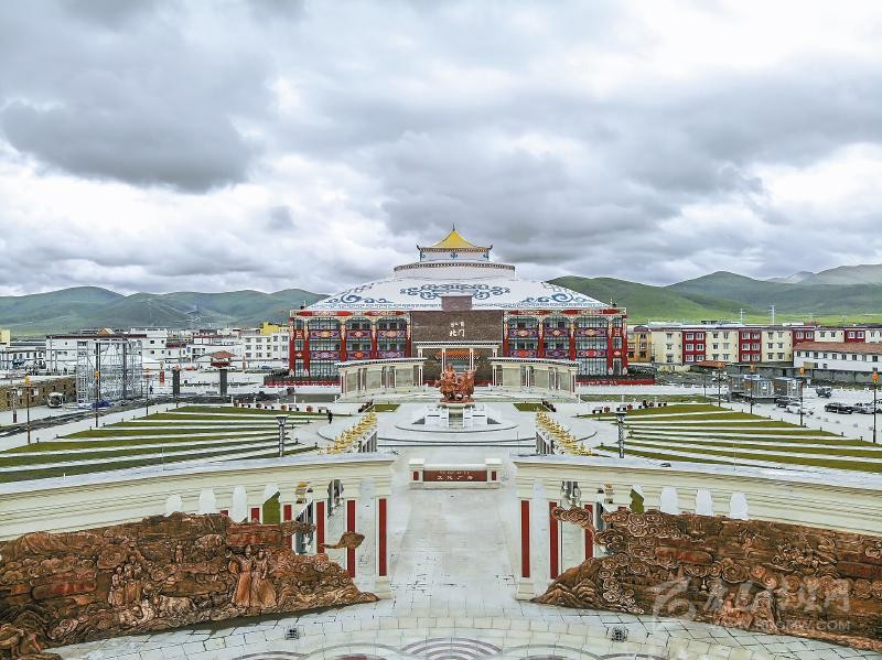 活動中心最“惹眼”的建筑,是一棟外形神似牧區(qū)帳篷的三層主體建筑。主體建筑的頂部,借鑒了石渠縣色須寺的外形設(shè)計,建筑外部的壁畫均為當(dāng)?shù)厥止に嚾擞H手繪制。活動中心的廣場上,以微縮的形式展現(xiàn)石渠縣最具代表性的景點,如石經(jīng)城、石經(jīng)墻等。