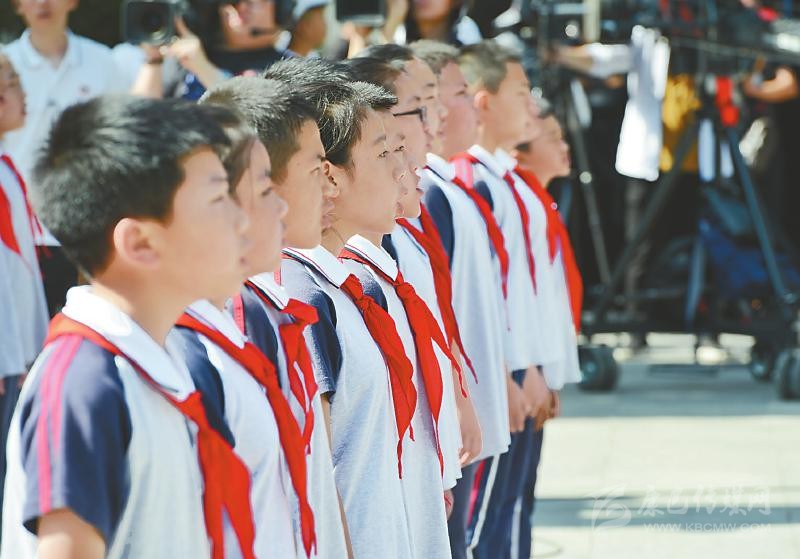 7月28日,紅軍飛奪瀘定橋紀念館前,少先隊員向英雄致敬。