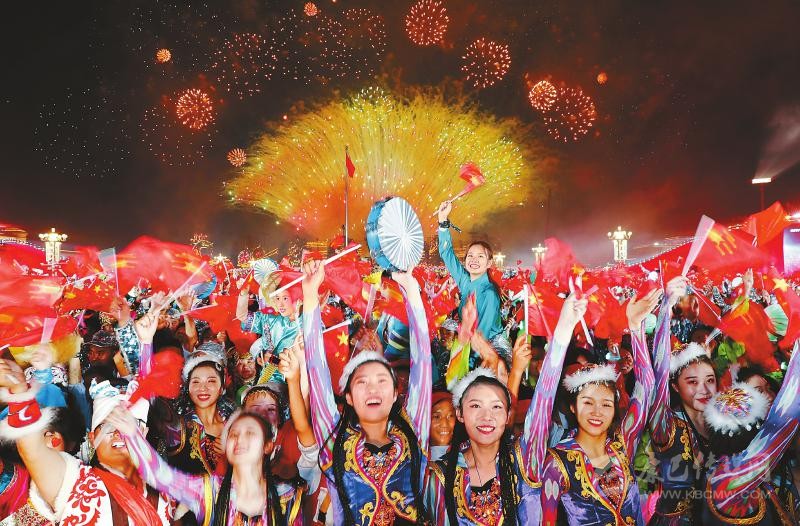 10月1日晚,慶祝中華人民共和國(guó)成立70周年聯(lián)歡活動(dòng)在天安門廣場(chǎng)舉行。圖為聯(lián)歡活動(dòng)現(xiàn)場(chǎng)。 圖片均由新華社發(fā)