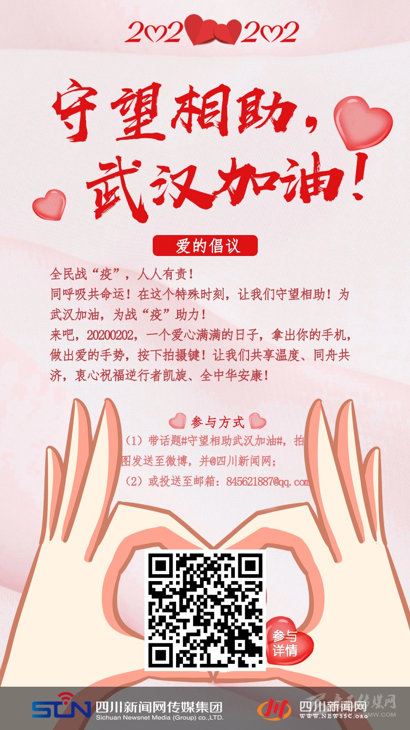 四川新聞網(wǎng)成都2月2日訊(蔡曉慧)2020年2月2日,被網(wǎng)友們賦予了“愛你愛你”的特殊含義。這些日子以來,因?yàn)樾滦凸跔畈《靖腥镜姆窝滓咔?,武漢“封城”全力抗擊疫情,四面八方匯集的醫(yī)護(hù)為這座城市帶去了力量和溫度,全國各地捐獻(xiàn)的物資為這座城市送去了支撐和關(guān)愛。在這個(gè)特殊的日子里,我們還可以做些什么,來為武漢加油?