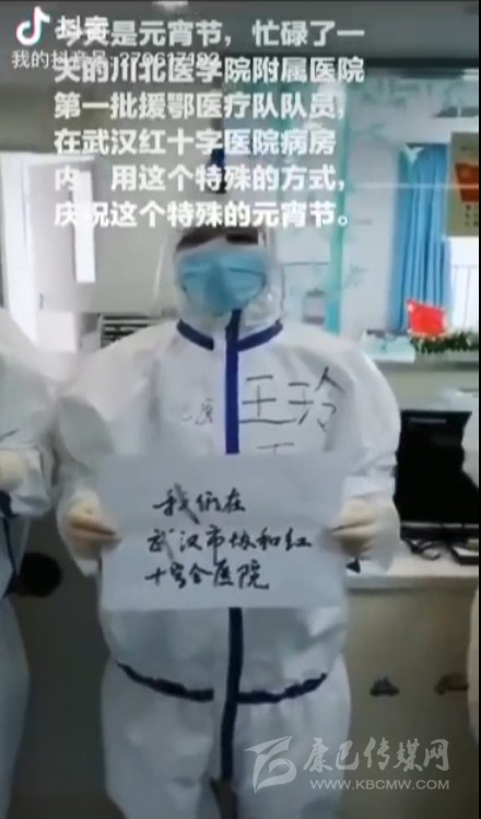 今年的元宵節(jié),注定是一個(gè)不平凡的日子。今天,川北醫(yī)學(xué)院援助湖北醫(yī)療小分隊(duì)的醫(yī)護(hù)人員,在武漢市協(xié)和紅十字會(huì)醫(yī)院,通過視頻向全市人民祝福元宵節(jié)快樂,表達(dá)眾志成城、抗擊疫情的堅(jiān)定信心。