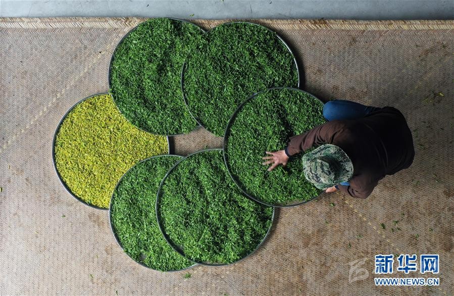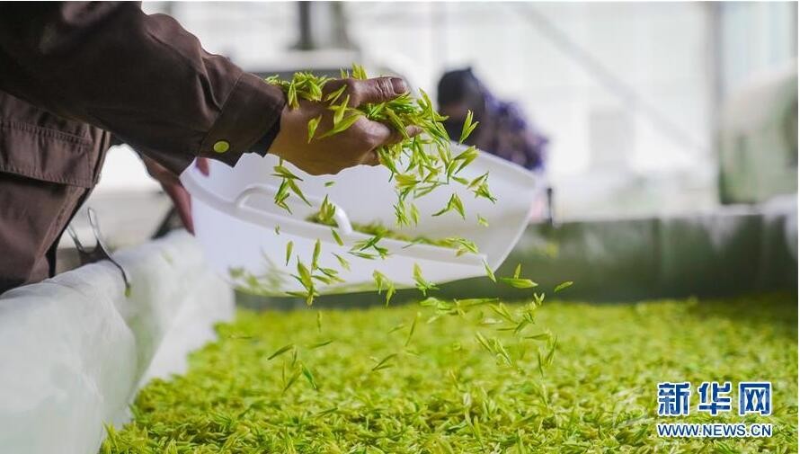 4月20日,在蘆山縣寶盛鄉(xiāng),工作人員在加工茶葉。