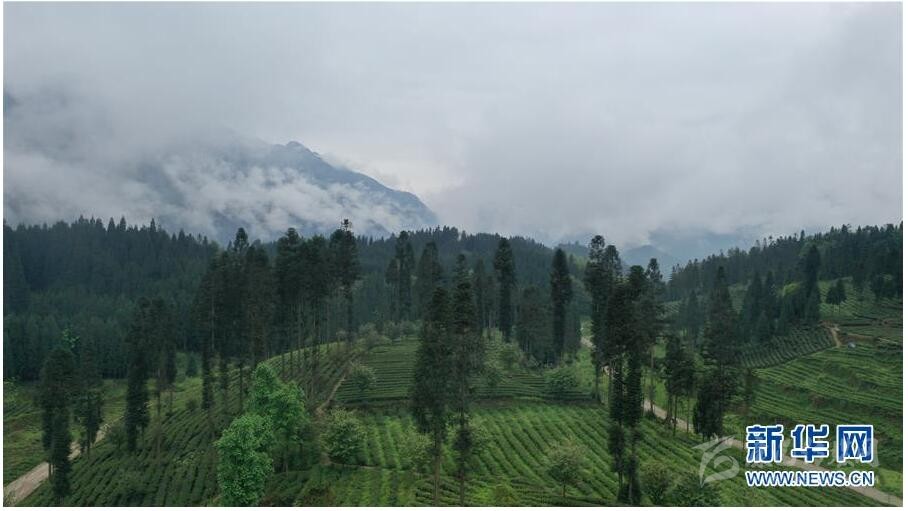 這是4月20日在蘆山縣寶盛鄉(xiāng)拍攝的茶園(無人機(jī)照片)。