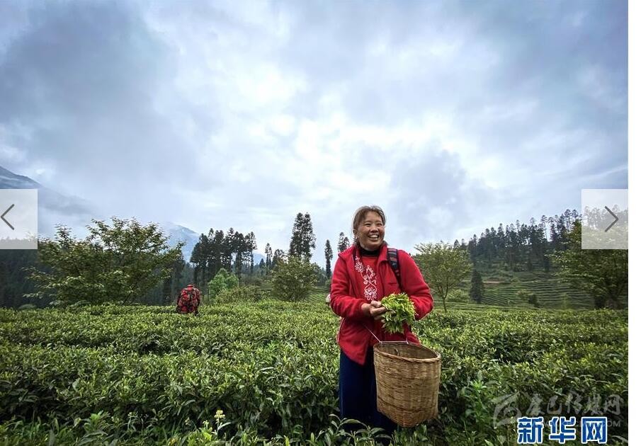 4月20日,在蘆山縣寶盛鄉(xiāng),采茶工人在采摘茶葉(手機(jī)拍攝)。