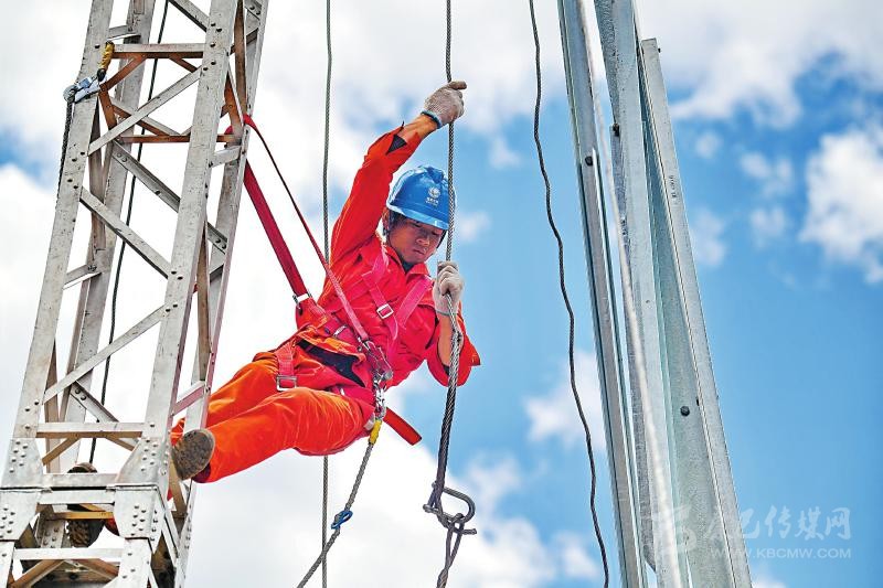 到達(dá)施工現(xiàn)場(chǎng),組塔工作也是十分艱難,鐵塔結(jié)冰,僅登塔時(shí)間便多出一倍,而作業(yè)時(shí)間每次不能超過半小時(shí),還要隨時(shí)面臨大風(fēng)、大雨、冰雹等天氣,導(dǎo)致工期推進(jìn)速度較平原地區(qū)慢一倍時(shí)間?!盀榱粟s在6月20日完成任務(wù),我連每天與女兒視頻的時(shí)間都省了,全力投入工作中。”項(xiàng)目部負(fù)責(zé)導(dǎo)線展放的電力工人楊彪說。