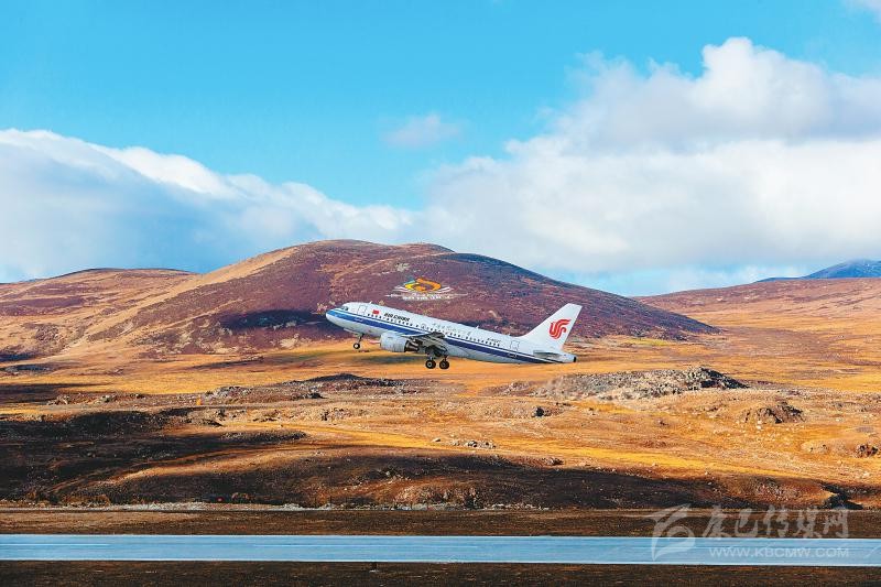 飛機(jī)在稻城亞丁機(jī)場起飛。