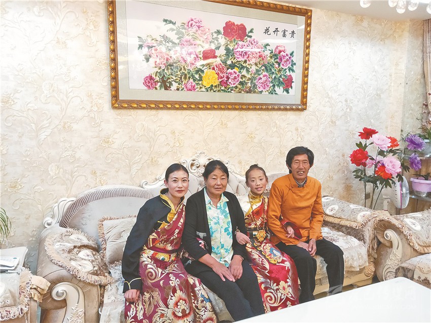 走進(jìn)澤仁塔新家中,只見嶄新的家具和現(xiàn)代化的家電一應(yīng)俱全,小康之家的氣息撲面而來?!啊畤}噠熱’(藏語,意為‘很好’)!這兩年,生活發(fā)生了喜人的變化,感謝黨,感謝政府!”說起自己的新家新生活,身穿藏族傳統(tǒng)服飾的澤仁塔新欣喜地豎起大拇指。
