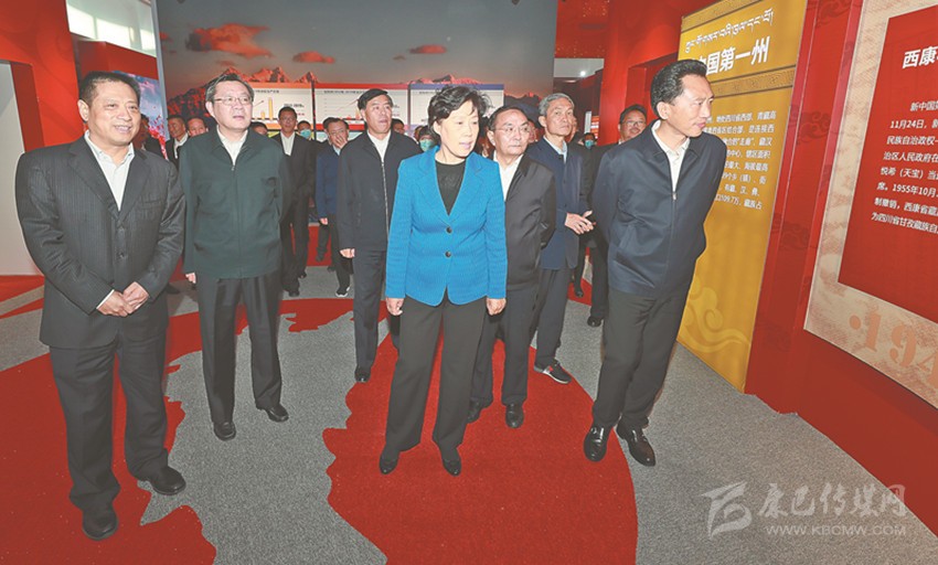 從和平解放到建立新生政權,從封閉落后到暢通高原,從平息武裝叛亂,開展“四反運動”到民主改革全面完成,從“穩(wěn)藏必先安康” 到“安康必先通康”,從脫貧攻堅到攻克“三區(qū)三州”貧困堡壘,從溫飽不足到?jīng)Q勝全面小康,從發(fā)展滯后到繁榮興盛,從一窮二白到暢通甘孜、美麗甘孜、和諧甘孜、小康甘孜即將建成。走進一個個展區(qū),田向利、郭衛(wèi)平等領導同志站在一幅幅反映甘孜70年來滄桑巨變的珍貴圖片前,留連駐足,認真聽取工作人員的講解,并不時交流討論,對甘孜大地70年來經(jīng)濟社會所取得的新成就、新變化深感振奮、贊不絕口。