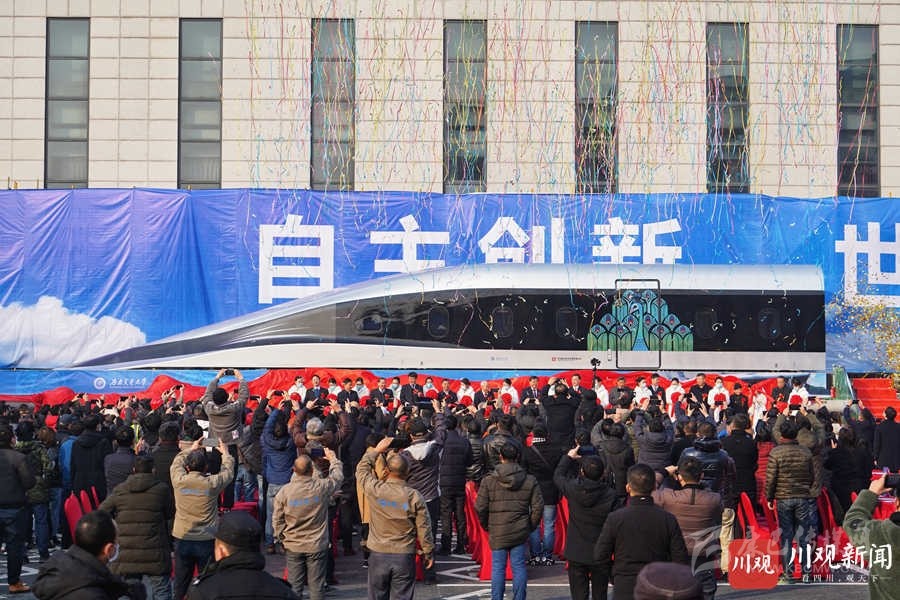 2021年1月13日上午,具有完全自主知識(shí)產(chǎn)權(quán)的高溫超導(dǎo)高速磁浮工程化樣車(chē)及試驗(yàn)線在西南交通大學(xué)九里校區(qū)正式啟用。華小峰 攝