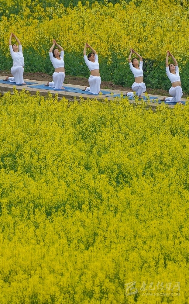 在南充市蓬安縣新園鄉(xiāng)踏坡梁村,來(lái)自省內(nèi)外的游客在數(shù)千畝油菜地里練瑜伽、騎賽車(chē)、秀旗袍、放風(fēng)箏。尹鋼 攝 (資料圖)
