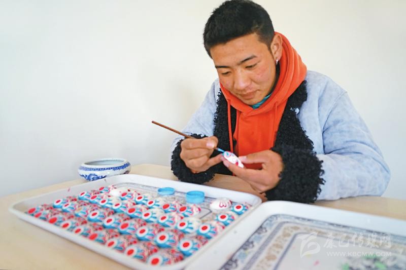 本著自主自愿的原則,教學(xué)班結(jié)束后,65名藏族青年主動加入扶貧彩繪實訓(xùn)班,成為項目的第一批學(xué)員。“實訓(xùn)期間不需要交任何費用,還包吃住。我對畫京劇臉譜很有興趣,我們第一個月學(xué)習(xí)繪畫基本功,第二個月開始,根據(jù)成品質(zhì)量,就可以計件得酬勞,學(xué)習(xí)期間我每月能掙500多元?!壁雠f。