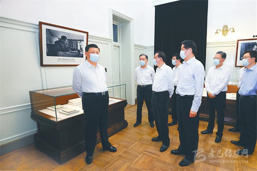 毛澤東同志在這里籌劃了新中國建立和建設的一系列大政方略。習近平帶領中央政治局同志來到這里參觀瞻仰,察看頤年堂大廳現場展陳,觀看毛澤東同志在豐澤園工作生活的影像短片,回顧毛澤東同志在這里主持召開的重要會議、作出的重大決策、會見的重要外賓,參觀毛澤東同志辦公區(qū)、會議室和藏書室,仔細察看毛澤東同志批改過的重要文件、閱讀過的書籍、穿過的衣物、使用過的日常用品和書信、手稿、照片等,追憶毛澤東同志的卓越功勛和崇高風范。習近平強調,北大紅樓和豐澤園在黨的歷史上都具有標志性意義,生動詮釋了中國共產黨是怎么來的、中華人民共和國是怎么來的,給我們上了一堂鮮活而又生動的黨史課。