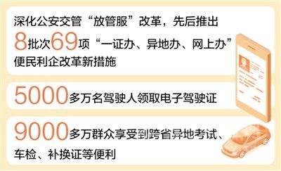 公安交管“跨省通辦”改革深入推進(jìn),駕駛證“全國(guó)通考”、機(jī)動(dòng)車“全國(guó)通檢”等改革措施全面落地,已有9000多萬(wàn)群眾享受到跨省異地考試、車檢、補(bǔ)換證、處理交通違法等便利,減少多次往返,更好適應(yīng)人員、貨物、車輛大流動(dòng)的新形勢(shì)。