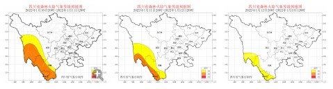 需要注意的是,據(jù)最新氣象資料分析: 1月11~12日,川西高原及攀西地區(qū)西部、南部基本無降水,空氣干燥,攀西地區(qū)西部、南部及甘孜州西南部的森林火險氣象等級為3~4級。13日川西高原及攀西地區(qū)大部有陣雨(雪),攀西地區(qū)西部、南部及甘孜州西南部的森林火險氣象等級為3級。
