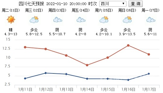 預(yù)計12日晚上到13日白天,盆地各市陰天,部分地方有小雨或零星小雨,西部北部高海拔地區(qū)有雨夾雪;川西高原和攀西地區(qū)陰天間多云有陣雪(雨),局部地方有中到大雪。