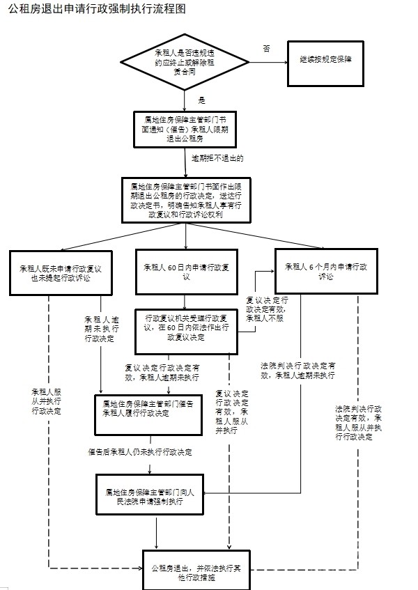 根據(jù)《指導(dǎo)手冊(cè)》,公租房退出以承租人行為和情形不同分為退回和騰退兩種方式,屬地住房保障主管部門(mén)對(duì)承租人到期拒不退出房屋及設(shè)施設(shè)備的,應(yīng)作出責(zé)令其限期騰退公租房的書(shū)面決定,逾期仍不履行的,可依法向人民法院申請(qǐng)行政強(qiáng)制執(zhí)行,“剛?cè)岵?jì)”解決公租房退房難問(wèn)題。