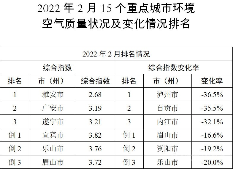 2月四川空氣質(zhì)量排名,這3個(gè)市排名靠前!