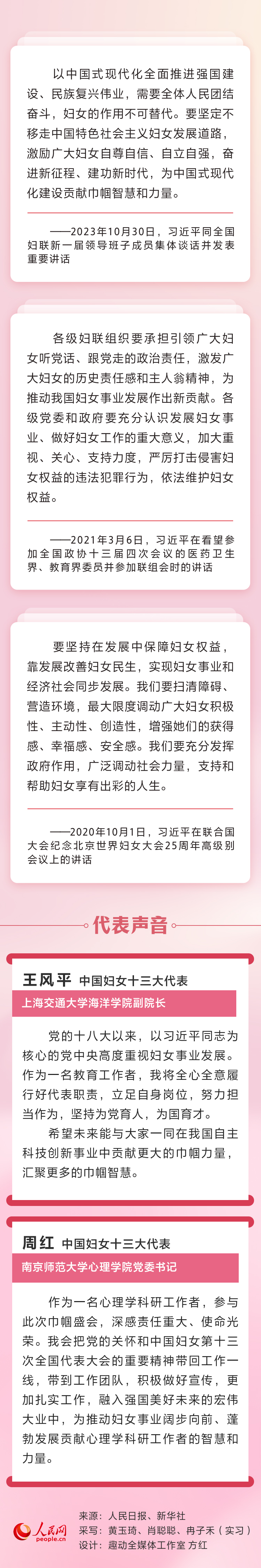 黨的十八大以來(lái),以習(xí)近平同志為核心的黨中央從黨和國(guó)家事業(yè)發(fā)展全局出發(fā),高度重視和積極推進(jìn)婦女工作,加強(qiáng)黨對(duì)婦女工作的領(lǐng)導(dǎo),堅(jiān)持中國(guó)特色社會(huì)主義婦女發(fā)展道路,部署婦聯(lián)改革任務(wù),發(fā)揮婦女在各個(gè)方面的積極作用,推動(dòng)我國(guó)婦女事業(yè)取得歷史性成就。人民網(wǎng)帶您重溫習(xí)近平總書(shū)記重要論述并邀請(qǐng)中國(guó)婦女十三大代表解讀。