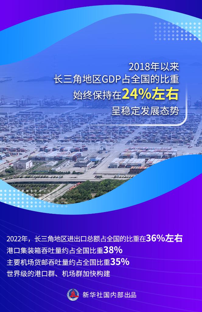 統(tǒng)計(jì)數(shù)據(jù)顯示,2018年以來(lái),長(zhǎng)三角地區(qū)GDP占全國(guó)的比重始終保持在24%左右,呈穩(wěn)定發(fā)展態(tài)勢(shì)。GDP過(guò)萬(wàn)億元的城市從6個(gè)提升到8個(gè),約占全國(guó)萬(wàn)億城市總數(shù)的1/3。