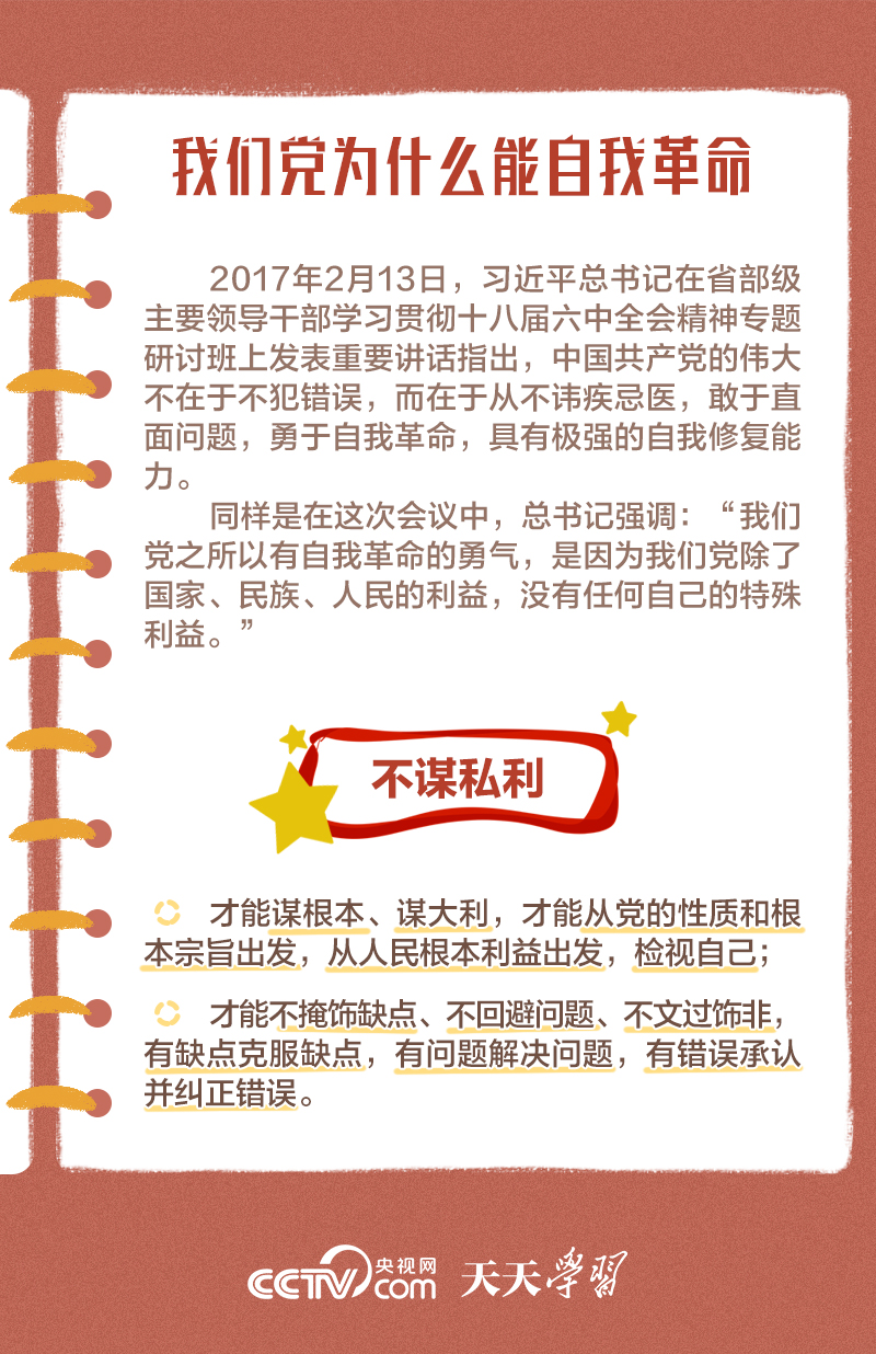 天天學(xué)習(xí)“在新時代十年全面從嚴(yán)治黨的實踐和理論探索中,我們不斷深化對黨的自我革命的認(rèn)識,積累了豐富實踐經(jīng)驗,形成了一系列重要理論成果,系統(tǒng)回答了我們黨為什么要自我革命、為什么能自我革命、怎樣推進(jìn)自我革命等重大問題?!?月8日,習(xí)近平總書記在中國共產(chǎn)黨第二十屆中央紀(jì)律檢查委員會第三次全體會議上發(fā)表重要講話。