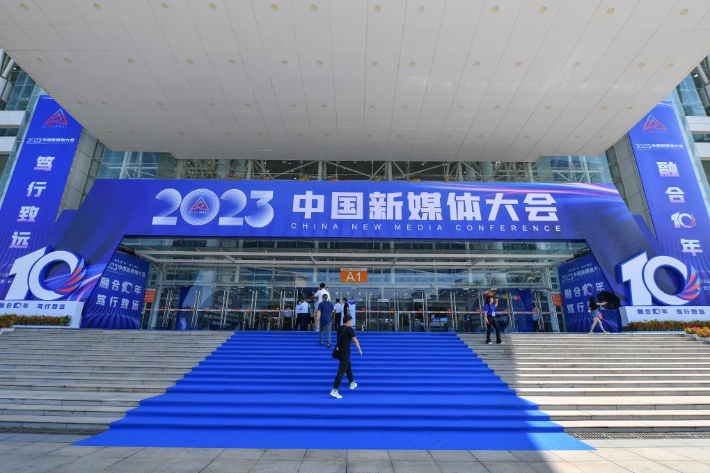 這是2023年7月12日拍攝的2023中國新媒體大會(huì)中國新媒體技術(shù)展外景。新華社記者 陳澤國 攝