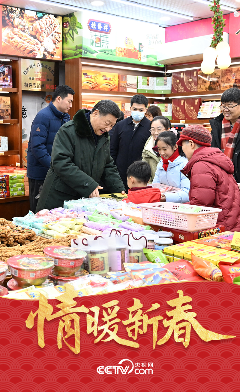 考察途中臨時(shí)下車(chē),總書(shū)記走進(jìn)一個(gè)快遞服務(wù)點(diǎn)向快遞員們拜年,問(wèn)他們工作累不累,過(guò)年回不回家。