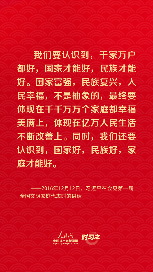 團(tuán)圓是春節(jié)永恒的主題?!皼](méi)有國(guó)家繁榮發(fā)展,就沒(méi)有家庭幸福美滿。同樣,沒(méi)有千千萬(wàn)萬(wàn)家庭幸福美滿,就沒(méi)有國(guó)家繁榮發(fā)展。”習(xí)近平總書(shū)記曾在多個(gè)場(chǎng)合深刻闡述家庭與國(guó)家之間的關(guān)系,從他的話語(yǔ)里一起感悟深厚的家國(guó)情懷。