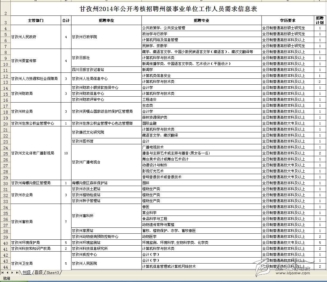 附件:1.甘孜州2014年公開考核聘用事業(yè)單位工作人員需求信息表