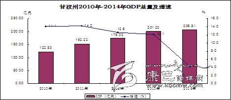 2014年,全州地區(qū)生產(chǎn)總值(GDP)達(dá)到206.81億元,按可比價(jià)格計(jì)算較2013年增長(zhǎng)4.2%。其中,第一產(chǎn)業(yè)增加值51.48億元,增長(zhǎng)4.6%;第二產(chǎn)業(yè)增加值77.20億元,增長(zhǎng)2.4%;第三產(chǎn)業(yè)增加值78.13億元,增長(zhǎng)6%。三次產(chǎn)業(yè)結(jié)構(gòu)為24.9:37.3:37.8。
