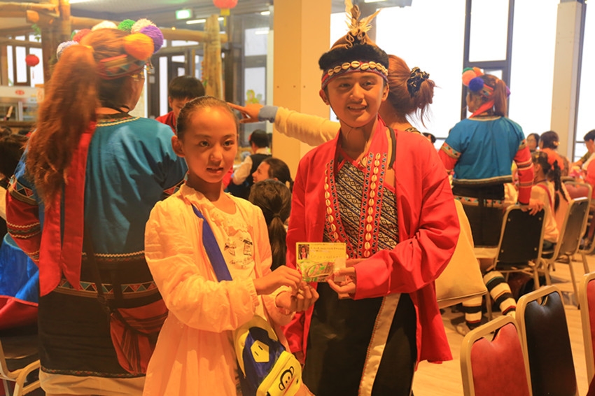 巴塘小朋友在臺上跳著歡快的《激情弦子》,臺下臺灣師生及學生家長立即打起節(jié)拍,把活動推向高潮。兩岸小朋友在午餐時間互相結對子,并通過贈送紀念品,互留電話號碼的方式將友情延續(xù)下去。在幾天的交流活動中,巴塘天籟童聲合唱團的孩子們也受到了臺灣當地學生家長們的熱烈歡迎。在每場演出的現場,隨處可見拿著相機、攝像機記錄交流活動全過程的當地學生家長。在巴塘孩子們的表演間隙,幾位熱心的當地學生家長們立即給巴塘孩子送上礦泉水,詢問他們“累不累,熱不熱”。一位家長告訴筆者:“我是學生家長,當我看到巴塘小朋友在如此炎熱的天氣下,穿著華麗厚實的民族服飾演出,我的眼睛里全是淚花,真的特別感動??吹竭@些孩子們天真的笑容,聽著他們嘹亮的歌聲,我和其他家長一樣都被震撼了。我還專門拍了視頻打算回去給家人看,我希望他們在臺灣的這幾天能夠開心快樂,也希望他們以后還能來臺灣做更多交流。”