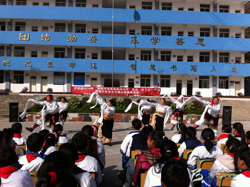據(jù)了解,瀘定縣委宣傳部組織縣委政法委、縣委黨校、縣文旅廣體局等單位聯(lián)合舉辦的瀘定縣2014 “愛(ài)國(guó)守法感恩團(tuán)結(jié)文明”宣講“四下鄉(xiāng)”暨踐行社會(huì)主義核心價(jià)值觀活動(dòng)先后深入得妥鄉(xiāng)、烹壩鄉(xiāng)等移民庫(kù)區(qū)及部分村組、學(xué)校、愛(ài)教基地、寺廟場(chǎng)所,將宣講、文藝表演以及科技、衛(wèi)生、法律服務(wù)帶到群眾身邊。