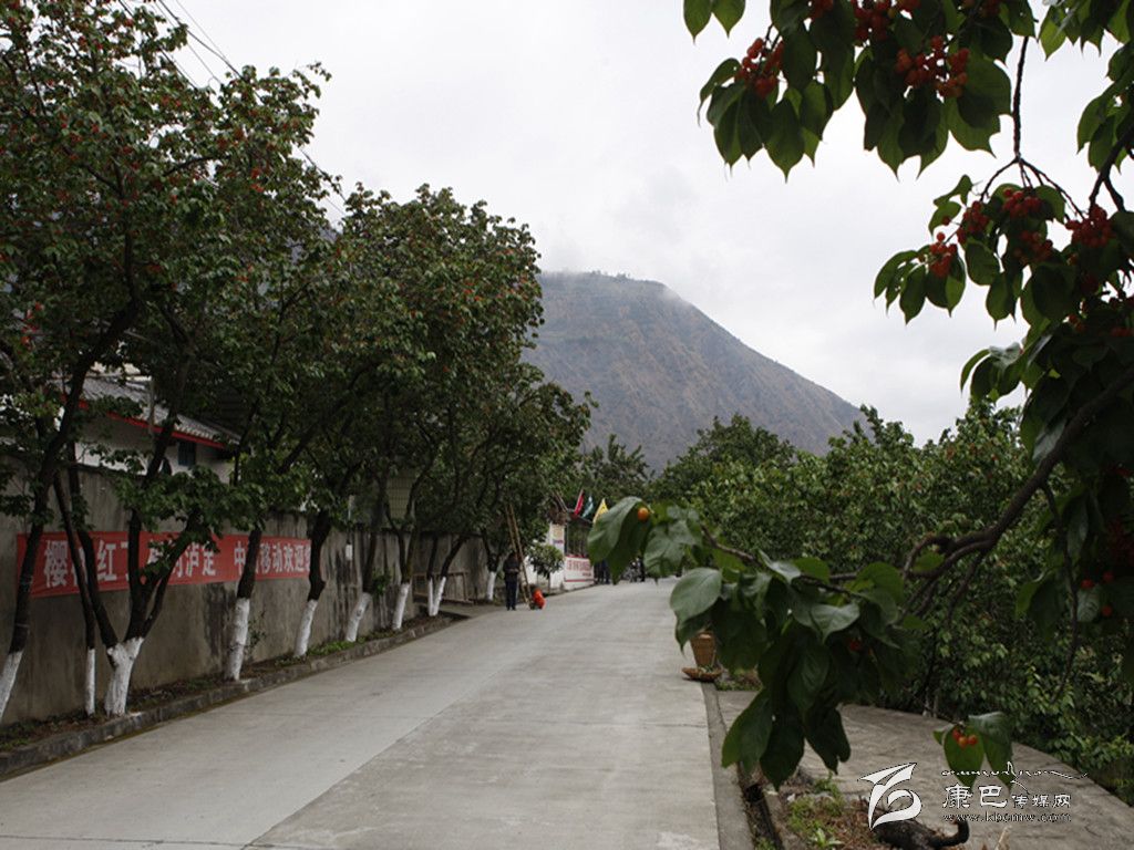 “來,嘗嘗我家的紅櫻桃。純綠色食品,營養(yǎng)豐富、甘甜可口。”正在自家櫻桃園里采摘櫻桃的一位村民熱情地招呼著記者。閑聊中得知,村民叫田忠華,今年55歲,是杵坭鄉(xiāng)杵坭村羊兒槽組的原住村民。田忠華告訴記者,他家現(xiàn)有4口人——自己、老伴及兒子、兒媳。說話間,田忠華指著正在旁邊一棵樹上采摘櫻桃的一名女子介紹說,那是他的兒媳拉姆,娘家在康定縣姑咱鎮(zhèn),與拉姆一同采摘櫻桃的兩個年齡相仿的漂亮姑娘,其中一個叫徐婷,是拉姆的堂妹,另一個則是拉姆的侄女。兩個姑娘都在瀘定中學讀高中,時值周末,便來幫助采摘櫻桃。面對記者的采訪,徐婷顯得甚是靦腆,當覺察到記者在拍攝她時,漂亮的臉蛋上一下子就漾起了一層紅暈。不過,置身這果香四溢的櫻桃林之中,還真不知究竟是滿樹滿枝的櫻桃映紅了姑娘的臉,還是姑娘的臉映紅了滿樹滿枝的櫻桃。只是,不經(jīng)意間發(fā)現(xiàn),這林中的鳥兒活躍得更加歡樂了。