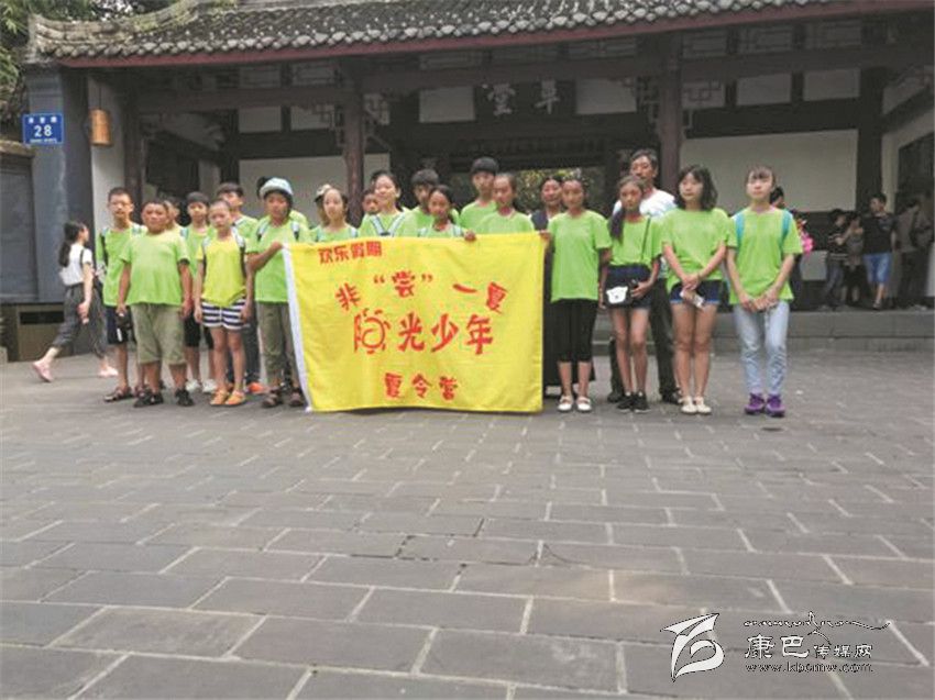 參加夏令營的同學(xué)們在杜甫草堂合影留念。