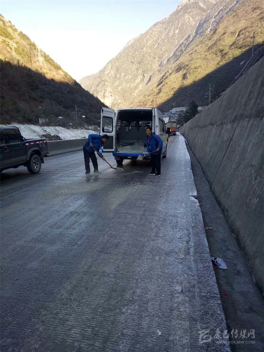 本網(wǎng)訊(李燕 本網(wǎng)記者 文/圖)近日,為有效減少和預(yù)防冬季雨雪冰凍惡劣天氣造成道路交通安全事故,康定翔瑞客運(yùn)有限公司加大安全隱患排查,多措并舉確保道路通行安全。圖為公司工作人員在康定污水處理廠至菜園子段鋪墊防滑沙。