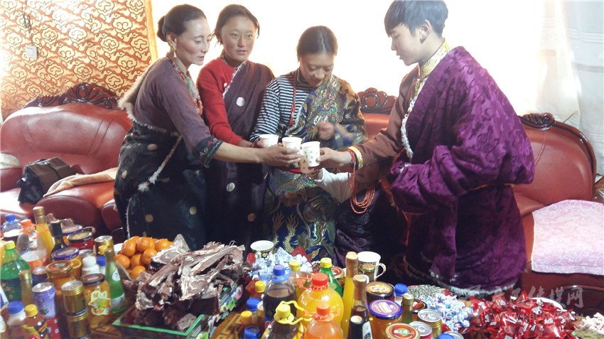根秋卓瑪一家是俄多瑪鄉(xiāng)的村民,初一一大早,根秋卓瑪就穿上節(jié)日的盛裝。“今天我們要把年貨擺放出來,等親戚朋友祈福回來,我們一家就會圍坐在一起,拉著家常、吃著美食、唱著山歌,高高興興歡度藏歷新年?!备镒楷斦f。
