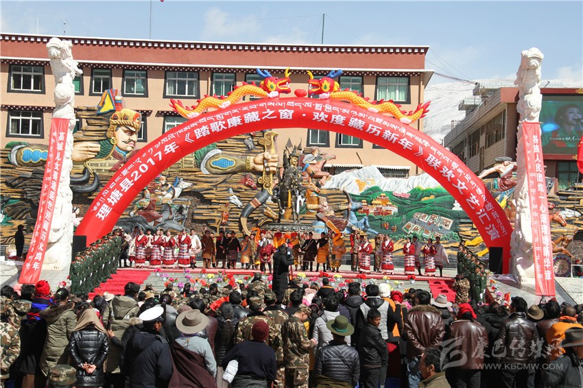 瑞雪初霽,踏歌迎春,2月28日,藏歷火雞新年初二,理塘縣格薩爾廣場上隆重舉行2017年“踏歌康藏之窗·歡度藏歷新年”文藝匯演,本次活動由縣委、縣人民政府主辦,縣委宣傳部、武警部隊(duì)、甲洼民間藏戲藝術(shù)團(tuán)等單位承辦。