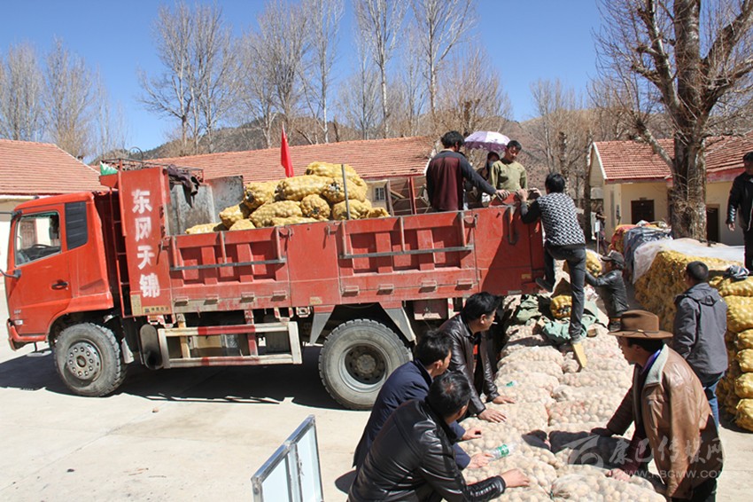 村民正在搬運(yùn)免費發(fā)放的馬鈴薯等農(nóng)用物資。