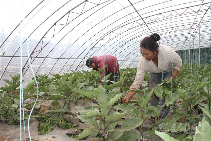 4月13日,理塘縣甲洼鎮(zhèn)俄曲村,貧困村民斯朗擁忠正在瑪吉阿米花園農(nóng)莊里給茄子打枝。