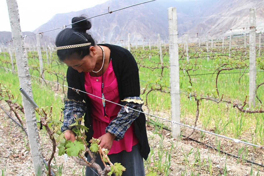 四郎吉村地處半山腰,干旱缺水、土地貧瘠,村民們以前都靠種植青稞來(lái)獲得收入?!斑^(guò)去,由于缺技術(shù)、葡萄的品質(zhì)不高,我家種的釀酒葡萄賣(mài)不出去;現(xiàn)在,太陽(yáng)魂公司承包了村民們的葡萄園,成立專(zhuān)業(yè)合作社,統(tǒng)一種植、統(tǒng)一管理、統(tǒng)一經(jīng)營(yíng),既規(guī)避了風(fēng)險(xiǎn),又為大家?guī)?lái)了很好的經(jīng)濟(jì)效益?!睂?duì)于村民仁青志瑪來(lái)說(shuō),生活的好轉(zhuǎn)都起因于小小的葡萄。