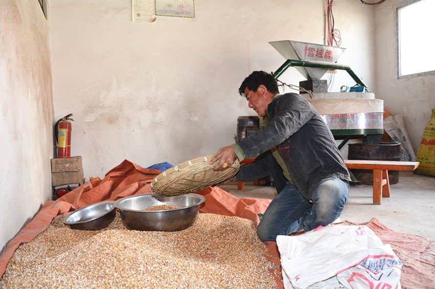 事實上,小作坊的準(zhǔn)確名稱是仁果下村電磨坊合作社,屬于村里的集體經(jīng)濟,廠房的建設(shè)、機器的購買都來源于扶貧專項資金。建成后,合作社提供崗位,讓村里的貧困戶來操作運營。于是,洛桑降措成為了這里的“主人”。