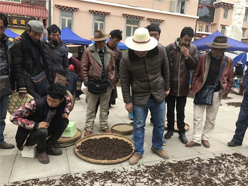 理塘縣素有“世界高城”之稱,因海拔高,出產(chǎn)的蟲草具有蟲長草短、質(zhì)堅(jiān)色黃、斷面黃白、氣香味鮮等特點(diǎn)。由于理塘縣是我州南路最大的蟲草產(chǎn)區(qū),在每年5月至6月蟲草采集季節(jié),全縣24個(gè)鄉(xiāng)(鎮(zhèn))、州內(nèi)其它縣的3萬余名采集人員集中涌入曲登等四鄉(xiāng)主產(chǎn)區(qū)采集蟲草。農(nóng)牧民群眾把采集到的蟲草賣給收購藥材的老板,在這些老板中,不僅有開公司的傳統(tǒng)商人,還有開網(wǎng)店的大學(xué)生。