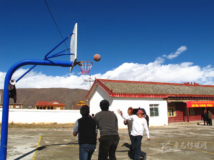 奪拖村村民在活動室打籃球。