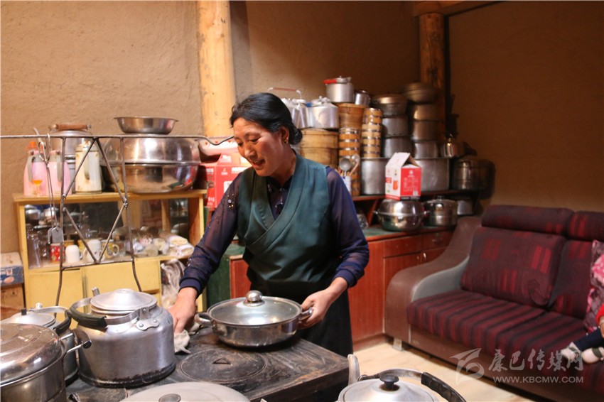走進廚房,鍋碗瓢盆、鋼爐、茶具、地板纖塵不染,客廳里收拾得整潔有序,干凈如新。在記者的要求下,扎西啟珍 坐在花叢中,笑臉如花。因為家里日子好過了,同時,家里也需要人手,她就還俗了。