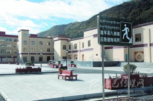 “這邊是避難廣場(chǎng),設(shè)置有救災(zāi)物資儲(chǔ)備倉(cāng)庫(kù)等;廣場(chǎng)邊還有露天水儲(chǔ)備設(shè)備和供水設(shè)施,一旦遇到緊急情況,這些設(shè)施可以馬上啟用。避難廣場(chǎng)外是新建成的濱河路,這一帶曾經(jīng)是爛泥灘?!币?yàn)闉?zāi)后重建,陳慶在道孚八美鎮(zhèn)一住就是3年,在介紹起八美鎮(zhèn)的災(zāi)后重建成果時(shí),他顯得有些自豪。