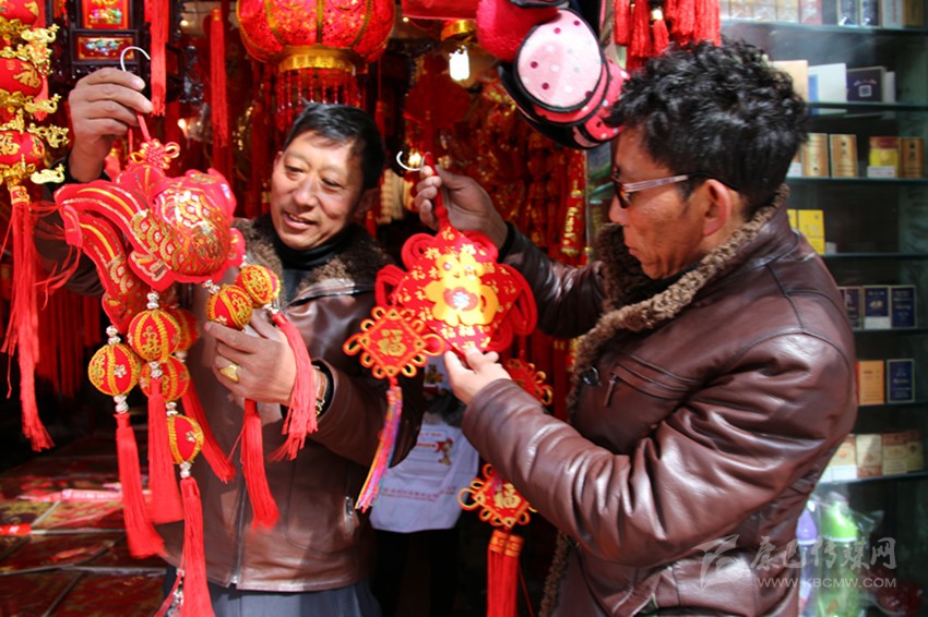 洛讓邊說(shuō)邊看著單子,“啊”了一聲,說(shuō):“差點(diǎn)忘了老婆大人交代的大事。”原來(lái),臨走時(shí),洛讓老婆特意叮囑他要買(mǎi)春聯(lián)、中國(guó)結(jié)和燈籠。好在側(cè)旁的郭達(dá)橋內(nèi)江小百貨店就有賣(mài),買(mǎi)好之后,洛讓又特意挑選了一個(gè)金線(xiàn)編織的魚(yú)掛飾,“這個(gè)好,這個(gè)好,年年有余。”滿(mǎn)臉充滿(mǎn)憧憬。